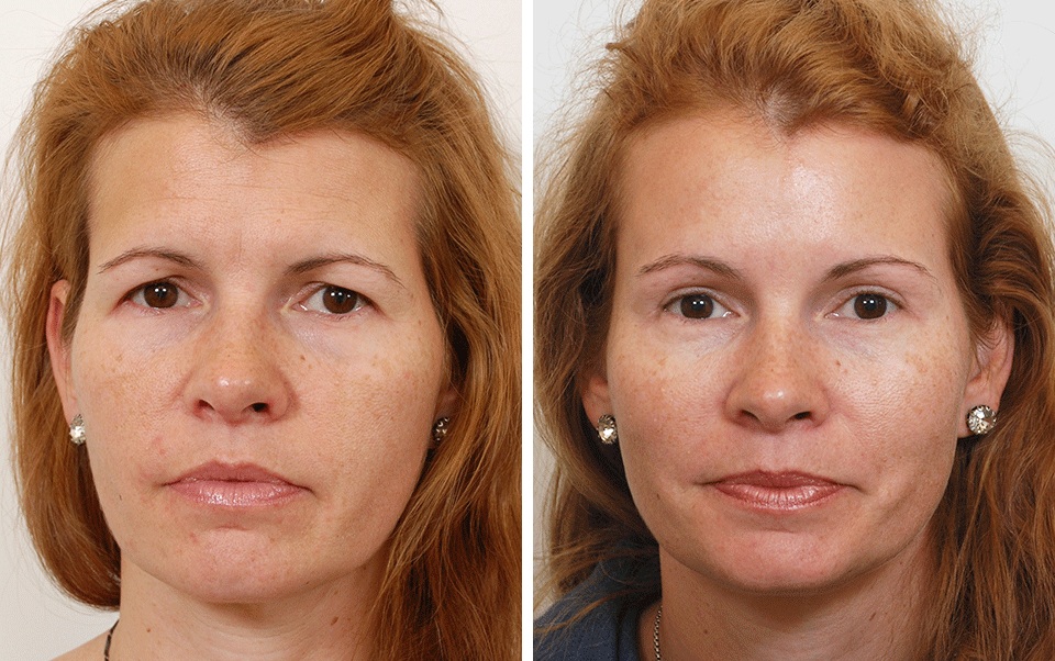 I love this set of before-and-after photos. They are of a 47-year-old mom of five. She came to me looking for a solution to the heaviness of her upper eyelids. She had done some research online and thought that she needed an upper lid blepharoplasty to help with the excess skin hanging over her upper eyelids.